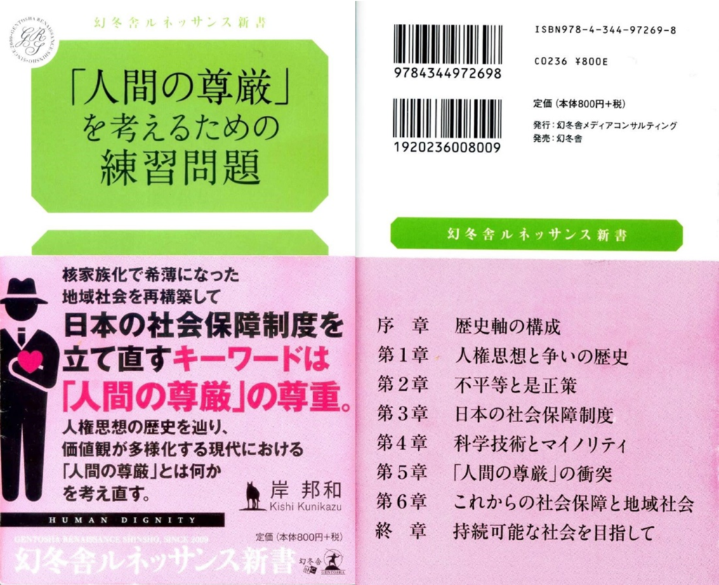 著書では、これからの社会保障制度を再考するためのキーワードは「人間の尊厳」の尊重と考えて、科学技術の進展と価値観の多様化の中で、老人と若者の尊厳、親と胎児の生命の尊厳、健常者と障碍者の尊厳などが衝突した時にはどのように解決したらいいのか、を考察した。