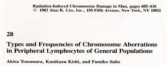 Tonomura, A., Kishi, K., Saito, F.: Types and frequencies of chromosome aberrations in lymphocytes of general populations. Progress and Topics in Cytogenetics 25, 605-616.1983.